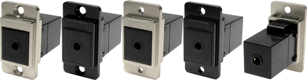 3.5 mm, 4-pole, audio jack, female-to-female, tin-plated copper alloy contacts.