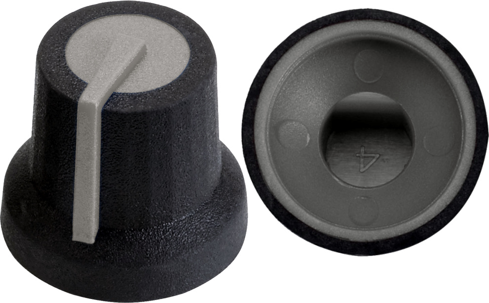 K11 Separate, push-in cap. The knob and cap can be plain or with a line.