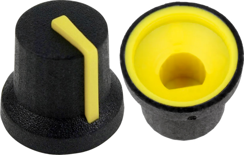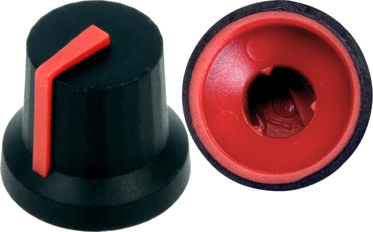 K87MAR. Black, rubberised rubberized, soft-touch (K87MAR) or hard-touch (K87MA) with moulded molded colour color top and marker line. Push fit. We can make custom versions subject to acceptable quantities. Knobs are low cost due to volume production. The non-removeable, coloured colored top helps identify colour color coded grouped functions in equipment with lots of controls.