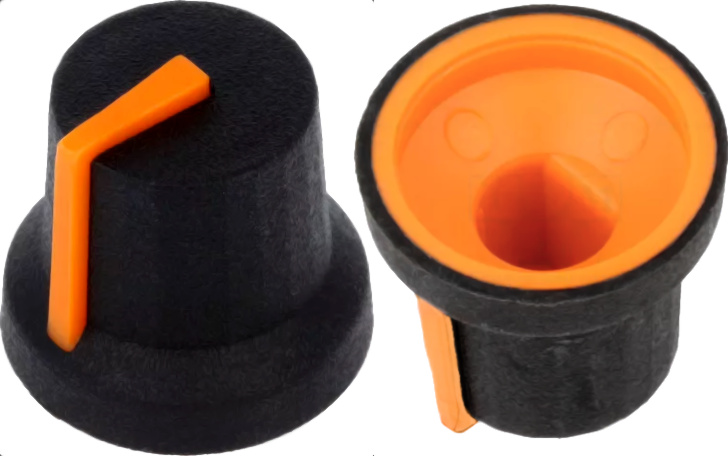 C18/SKT Knob and skirt in one piece. The skirt can have a marker line or printed numbers 0-10. Push fit. Coloured Colored caps are not available.