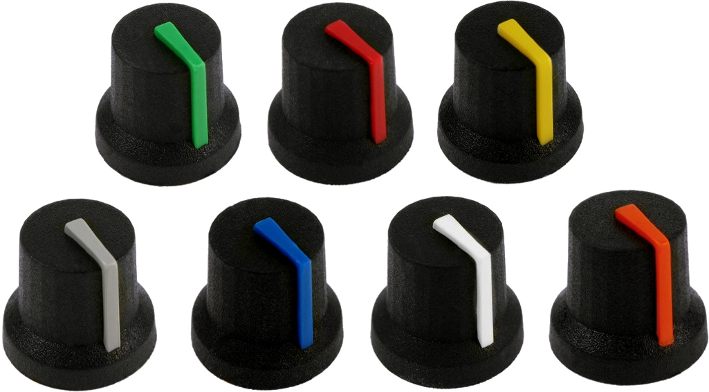 Knob caps can be supplied plain, with a marker line (ML), with a marker dot (MD), or custom legend.