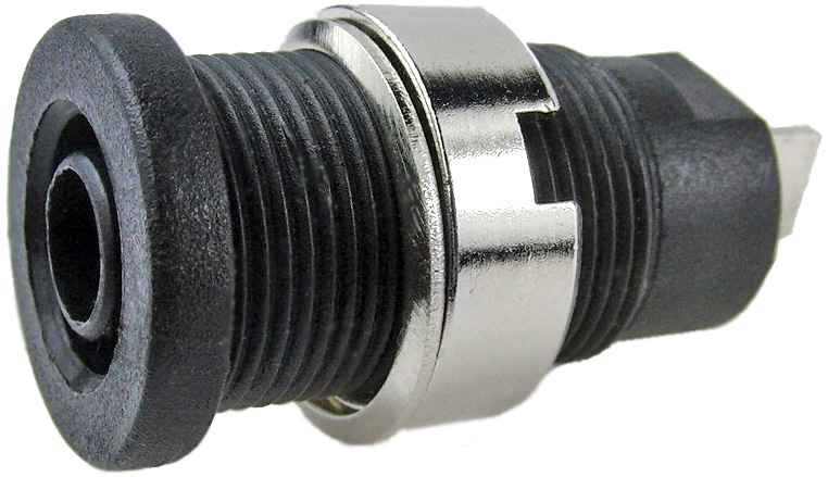 Unshrouded, 4 mm socket. Nickel-plated. Mates with most unshrouded 4 mm plugs .