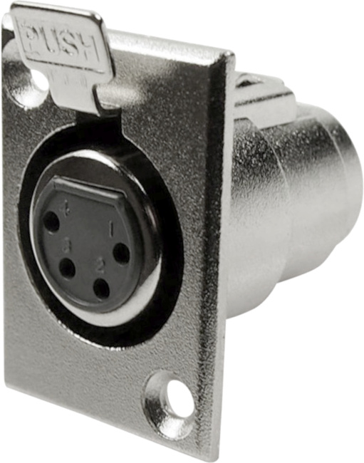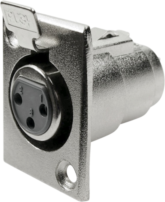 3-pole, nickel metal, female socket. XLR-format, panel cut-out.