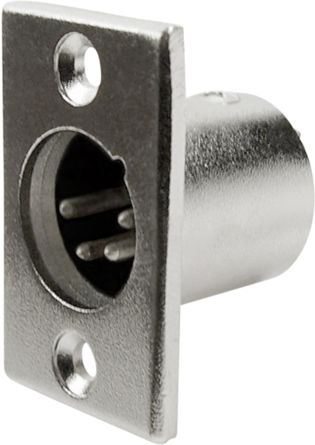 3-pole, nickel metal, male socket. XLR-format panel cut-out.