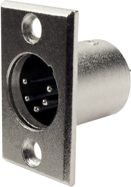 5-pole, black metal, male socket. XLR-format panel cut-out.